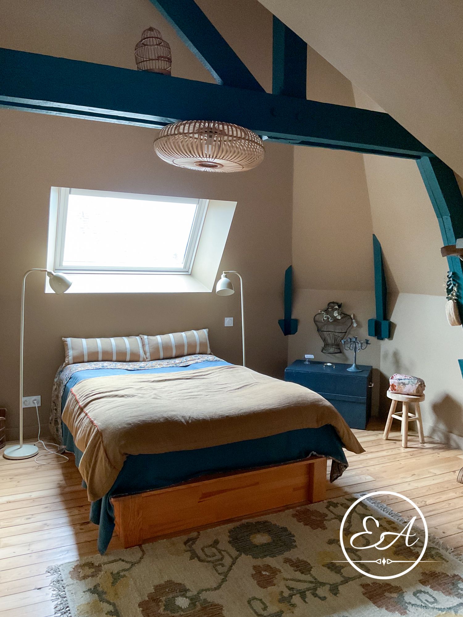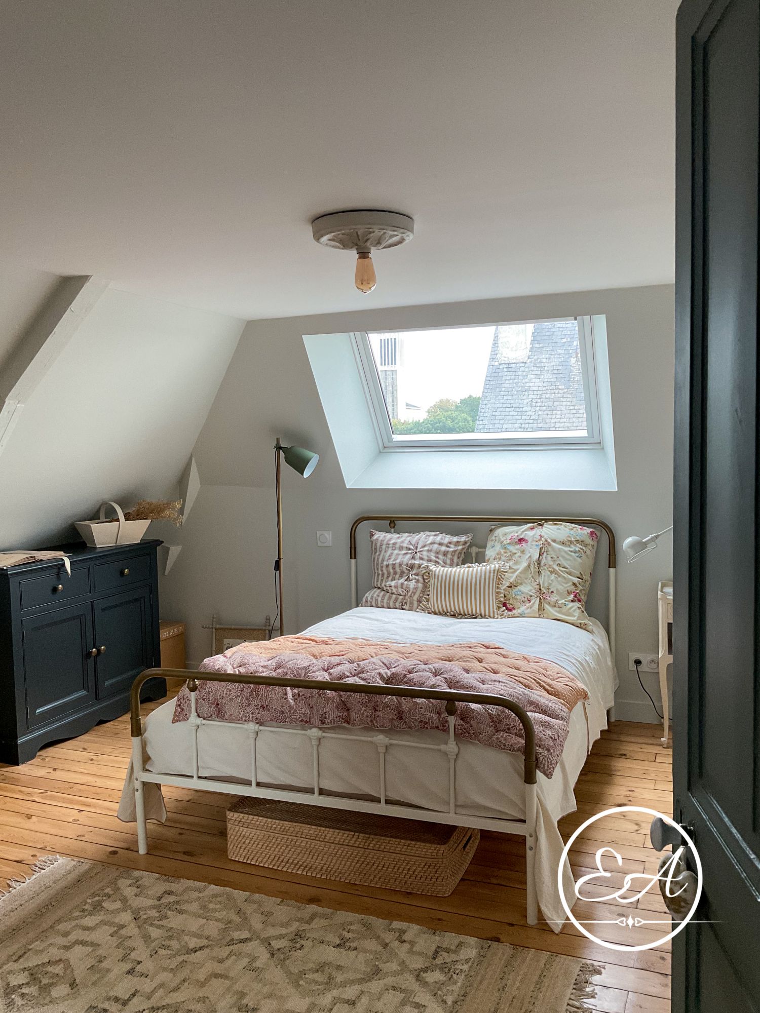 Les combles, autrefois inutilisés et simplement isolés par une laine de verre au sol, se sont transformés en un étage chaleureux comprenant deux chambres d’amis et une salle de bain.