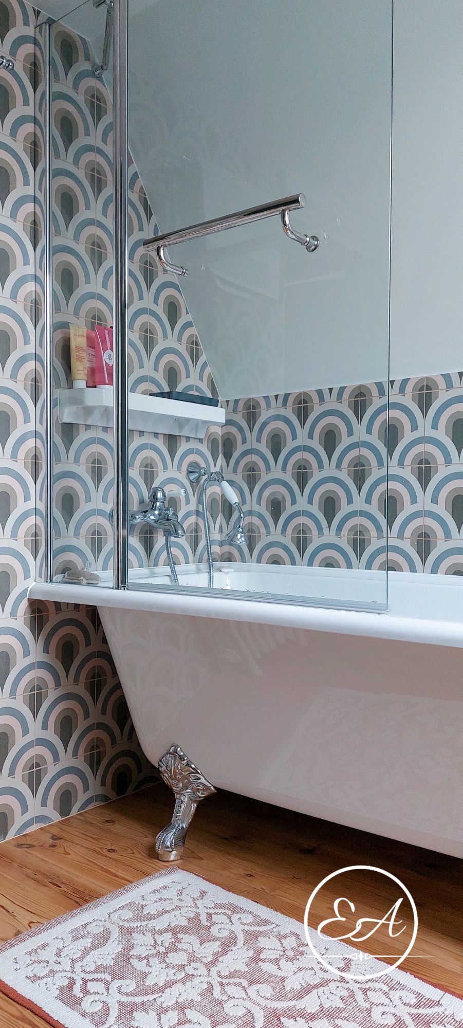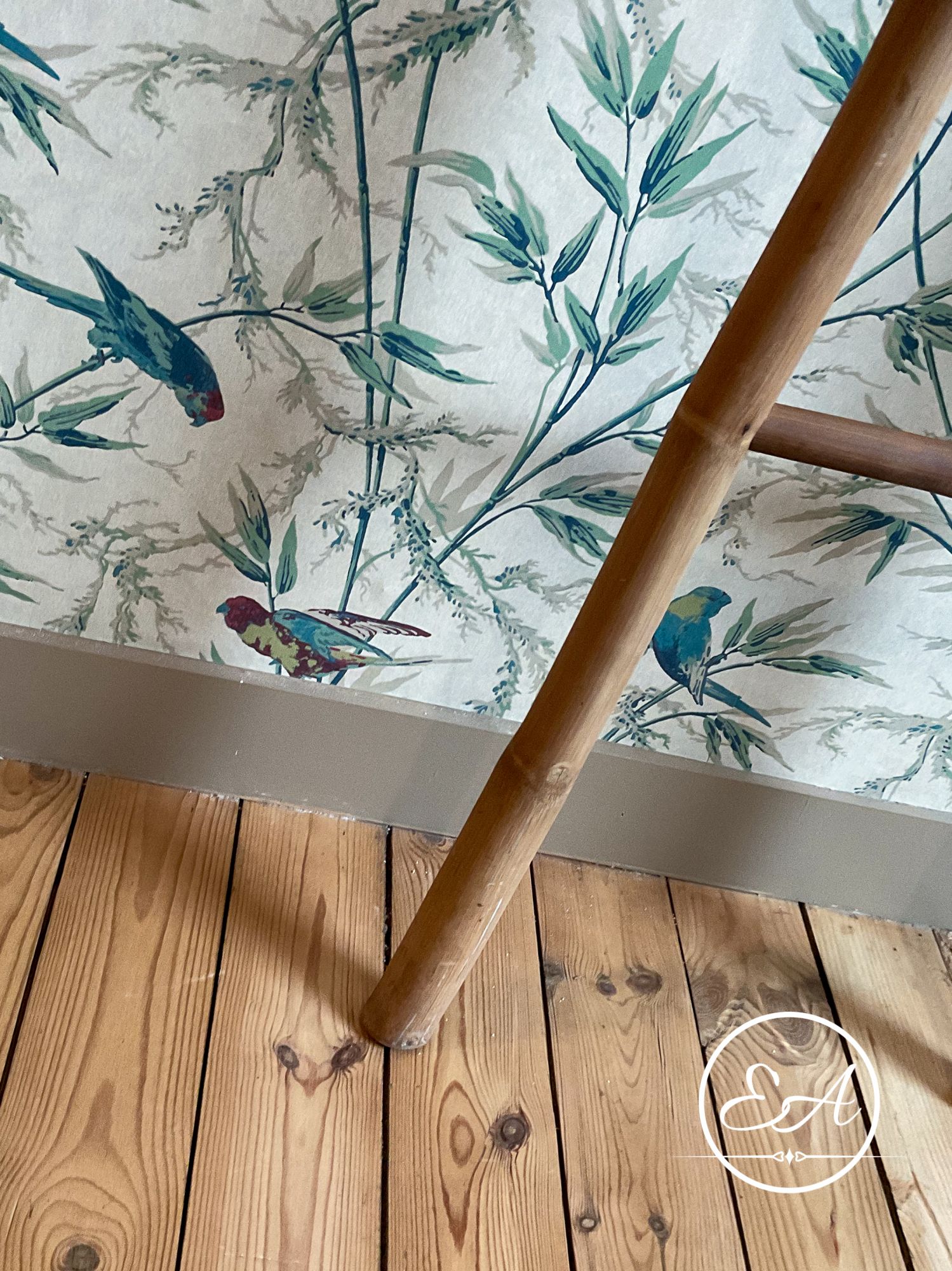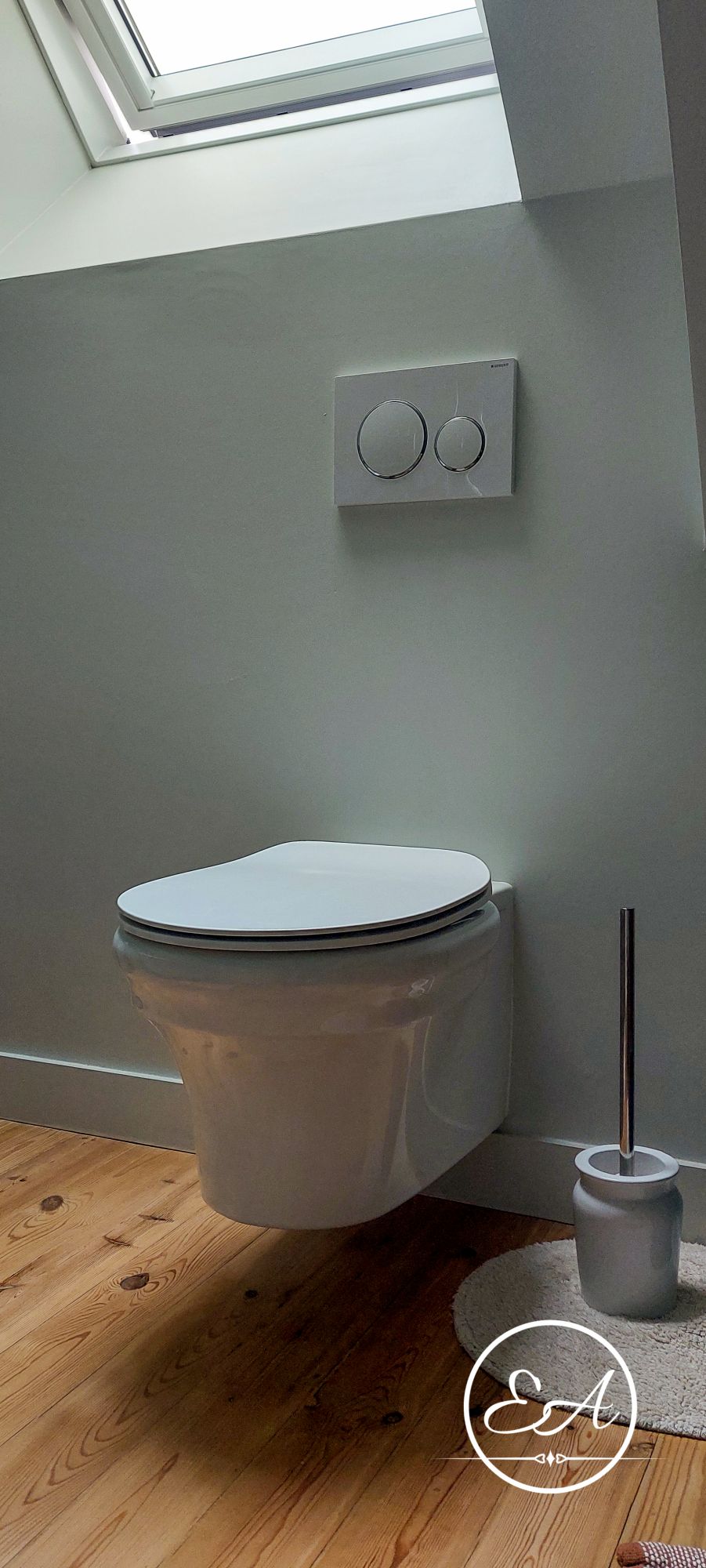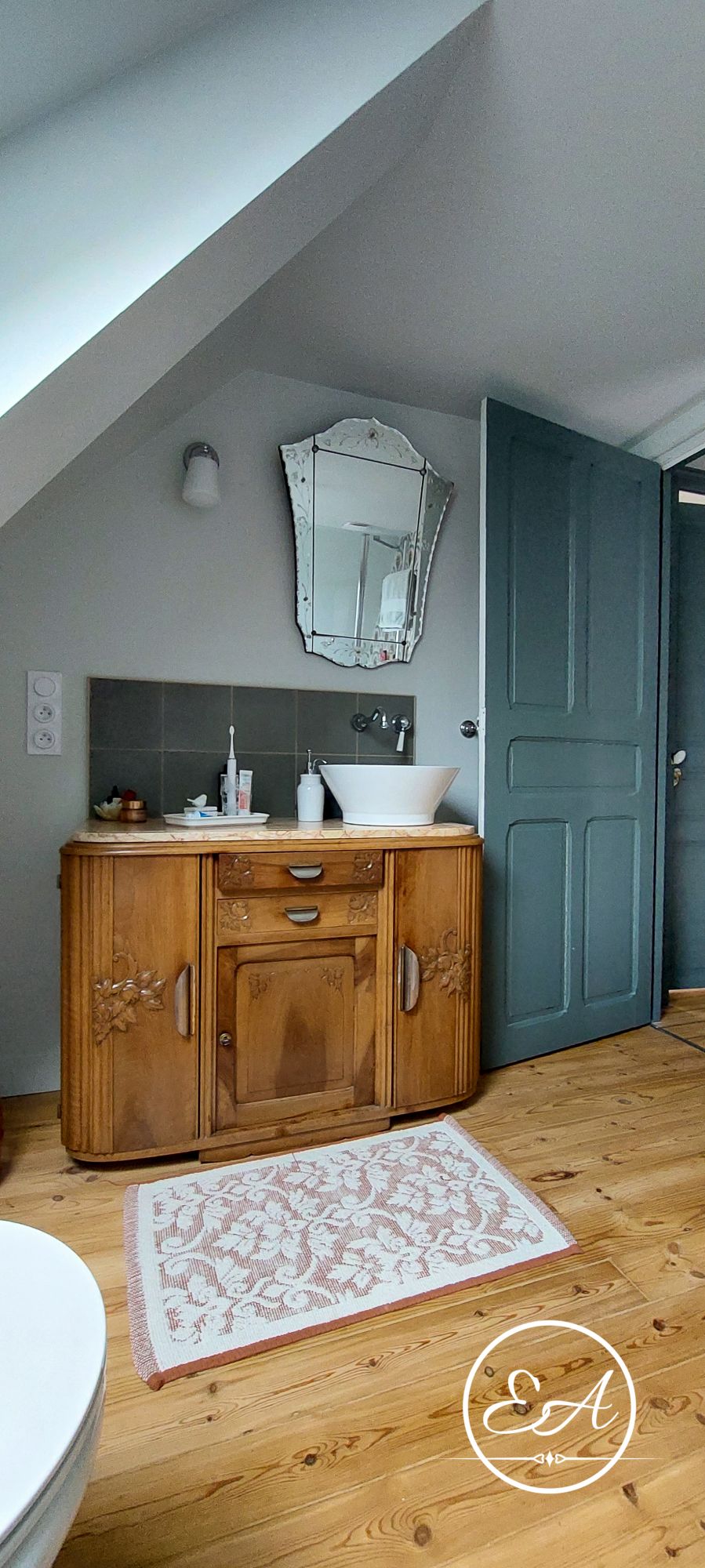 Le projet a nécessité la restructuration du réseau de chauffage à cet étage suite au remplacement de la chaudière, ainsi qu’un réagencement des volumes pour optimiser la circulation et le confort. Une partie des cloisons existantes a été conservée pour préserver la mémoire du lieu, tandis que la salle de bain a été agrandie pour accueillir une baignoire sur pieds et un univers décoratif plein de caractère.